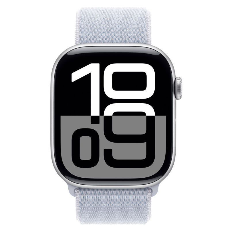 Apple Watch Series 10 Aluminium 42mm Αδιάβροχο με Παλμογράφο Silver με Blue Cloud Sport Loop