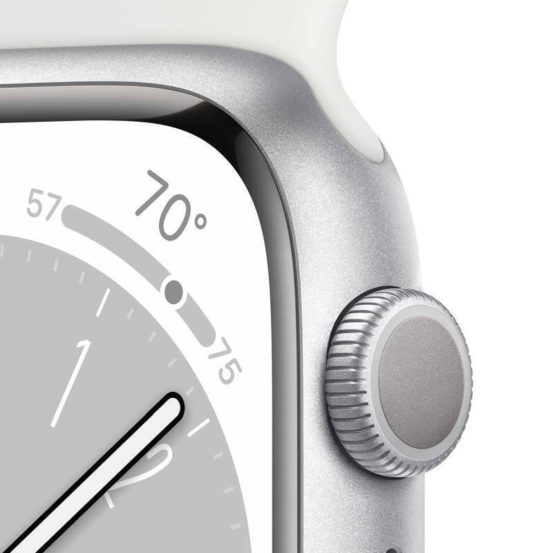 Apple Watch Series 8 Cellular Aluminium 45mm Αδιάβροχο με eSIM και Παλμογράφο Silver with White Sport Band