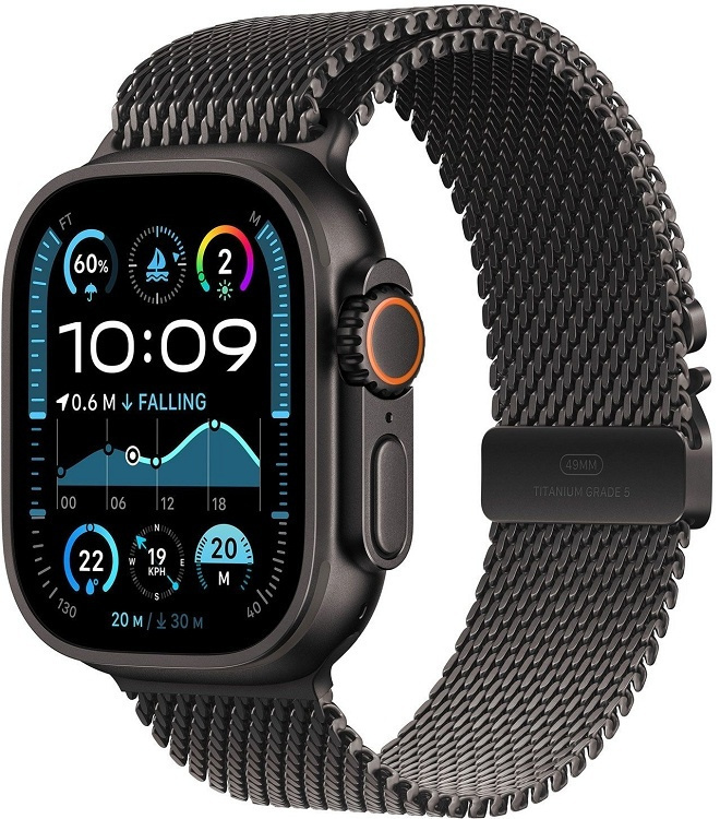 Apple Watch Ultra 2 2024 Titanium 49mm Αδιάβροχο με eSIM και Παλμογράφο Black με Black Titanium Milanese Loop – Medium
