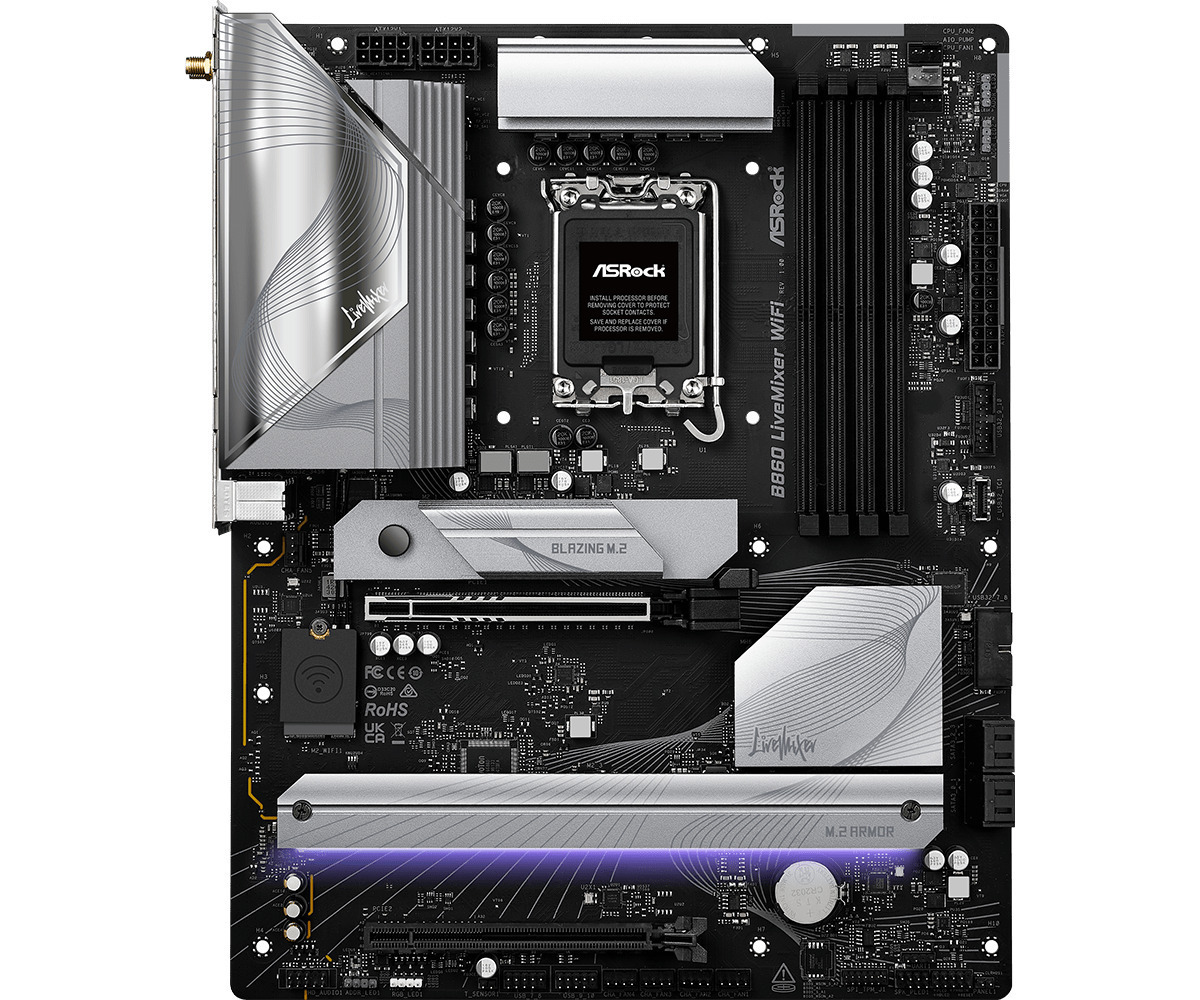Η ASRock B860 LiveMixer WIFI είναι μια υψηλών επιδόσεων μητρική πλακέτα σχεδιασμένη για το socket AMD AM5 , υποστηρίζοντας επεξεργαστές Ryzen 7000 Series . Ενσωματώνει το ισχυρό chipset X870 , προσφέροντας υποστήριξη για PCIe 5.0 σε γραφικές κάρτες και αποθηκευτικά μέσα, εξασφαλίζοντας εξαιρετικές ταχύτητες και μελλοντική επεκτασιμότητα. Με Wi-Fi 6E , 2.5Gbps LAN , και πολλαπλά M.2 slots με θερμική ψύξη, η μητρική εξασφαλίζει γρήγορη συνδεσιμότητα και κορυφαίες επιδόσεις αποθήκευσης. Ενισχυμένη με προηγμένο σύστημα τροφοδοσίας και υποστήριξη DDR5 RAM , παρέχει σταθερότητα και αξιοπιστία ακόμα και σε απαιτητικά σενάρια υπερχρονισμού. Ο gaming σχεδιασμός Phantom Gaming συνδυάζει υψηλή αισθητική με Polychrome RGB φωτισμό, καθιστώντας την ιδανική για απαιτητικούς gamers και power users που επιθυμούν ισχύ, στιβαρότητα και κομψότητα για το σύστημά τους.