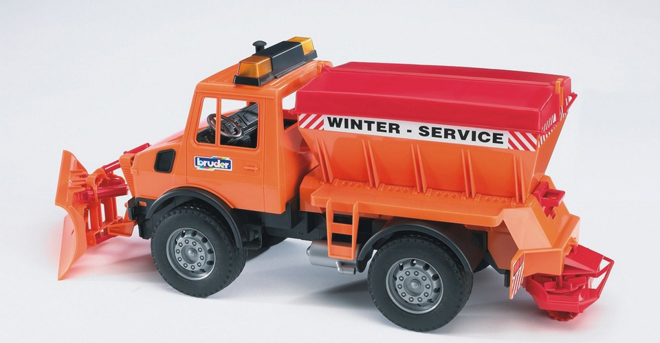 Εκχιονιστικό MB Unimog Winter Service. Με λειτουργική καρότσα και εμπρόσθιο σκαφέα. Με δυνατότητα συμπλήρωσης και να κλειδώνει το σιλό δοχείο. Με πλήρως λειτουργικό μηχανισμό διασποράς. Το ύψος είναι ρυθμιζόμενο και μπορεί να κλειδώσει στη θέση του. Πλήρως λειτουργικό και μπορεί να κινηθεί. Διαστάσεις: 47x16x19,5 εκ. (μήκος/ύψος/πλάτος)