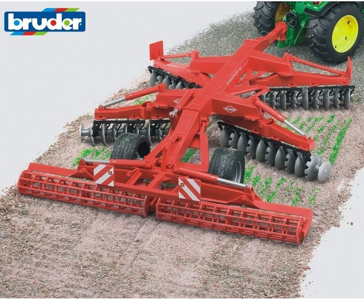Η δισκοσβάρνα της εταιρείας Kuhn discover XL είναι κατάλληλη για την καλλιέργεια μεγάλων εκτάσεων με τρακτέρ από 160 HP. Ακριβώς όπως το πρωτότυπο, το λεπτομερές μοντέλο παιχνιδιού διαθέτει τέσσερα πλαίσια δισκοσβάρνας με 54 περιστρεφόμενους δίσκους και δύο κυλίνδρους. Με το πιστό στο πρωτότυπο μοντέλο τα πλαίσια των δισκοσβάρνων αναδιπλώνονται και τοποθετούνται για οδήγηση σε δρόμους. Το δισκοσβάρναρο μπορεί να ανασηκωθεί για οδήγηση σε δρόμους. Τα ελαστικά με πέλματα ολοκληρώνουν την εικόνα. Είναι κατάλληλο για όλα τα τρακτέρ της σειράς Profi και τα Unimog της MB (δεν περιλαμβάνονται).
