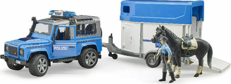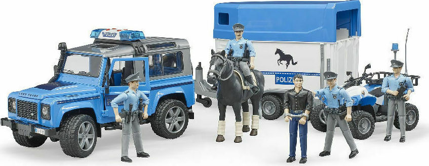Η αστυνομική δύναμη BRUDER ιδρύθηκε για την επιβολή του νόμου και της τάξης. Ο συνδυασμός αστυνομικού οχήματος Land Rover Defender και κουτιού αλόγων που περιλαμβάνει έφιππο αστυνομικό αποτελεί μια εντυπωσιακή προσθήκη στην ομάδα. Οι εκπληκτικές ιδιότητες εκτός δρόμου και η διαχρονική σχεδίαση Land Rover καθιστούν την αστυνομική έκδοση του BRUDER Defender Station Wagon ένα ευέλικτο όχημα υπηρεσίας έκτακτης ανάγκης.