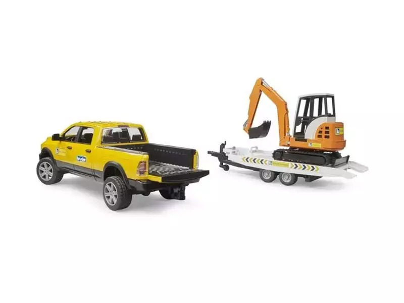 Το παρεχόμενο ρυμουλκούμενο διαθέτει στήριγμα για τη ράβδο έλξης και η πλατφόρμα του μπορεί να γέρνει για εύκολη φόρτωση. Περιλαμβάνεται επίσης μίνι εκσκαφέας BRUDER, ο οποίος είναι πλήρως λειτουργικός. Το φτυάρι του εκσκαφέα είναι αφαιρούμενο και η λεπίδα του μπουλντόζα είναι ρυθμιζόμενη. Η μπούμα του μίνι εκσκαφέα μπορεί να είναι λοξά και η καμπίνα του περιστρέφεται 360°.