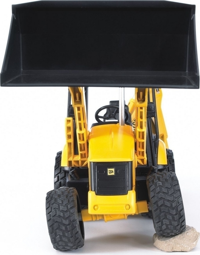 Διαθέτει περιστρεφόμενο κάθισμα οδηγού το οποίο είναι συμβατό με φιγούρες Bruder. Περιλαμβάνει 2 αναδιπλούμενα πόδια στήριξης για περισσότερη σταθερότητα, φτυάρι μπροστινού φορτίου με θέση φόρτωσης και εκφόρτωσης & αποσπώμενη μονάδα φόρτωσης εκσκαφέα.
