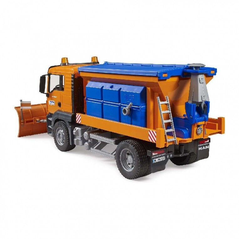 Το εκχιονιστικό MAN TGS είναι ένα εντυπωσιακό και ακριβές αντίγραφο του αυθεντικού εκχιονιστικού οχήματος. Το πλάτος της πλάκας είναι ρυθμιζόμενο σε ύψος και αποσπώμενο, επιτρέποντας την απομάκρυνση ακόμα και του πιο πυκνού χιονιού και τη δημιουργία λωρίδας κατάλληλης για την κυκλοφορία. Ο μηχανισμός αλατιέρας λειτουργεί εξαιρετικά, εφαρμόζοντας άμμο ή άλλο σπρέι στην επιφάνεια του δρόμου, γεγονός που βοηθά στην πρόληψη της απώλειας ελέγχου των οχημάτων. Το φορτηγό MAN TGS μπορεί να εξοπλιστεί με το BRUDER Light & Sound Module (κωδ. 02801).