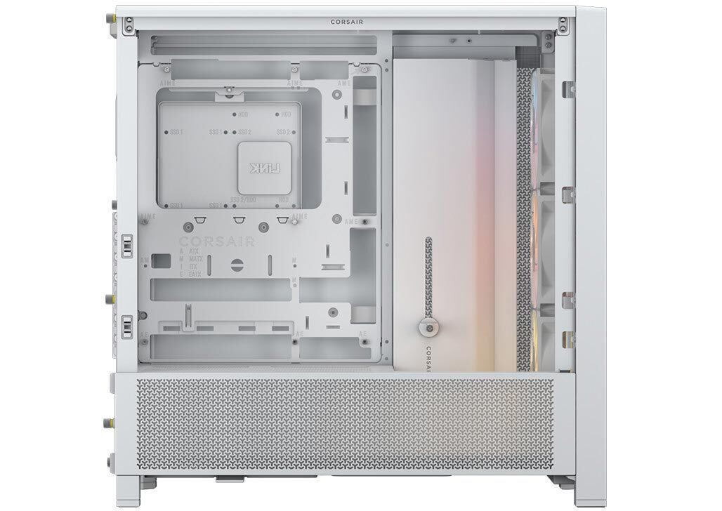 Το Corsair Frame 4000D RS είναι μια πλήρως αρθρωτή και ευρύχωρη θήκη Η/Υ μεσαίου πύργου με σύστημα τοποθέτησης ανεμιστήρων InfiniRail™ και συμβατή με μητρικές πλακέτες με αντίστροφο σύνδεσμο.