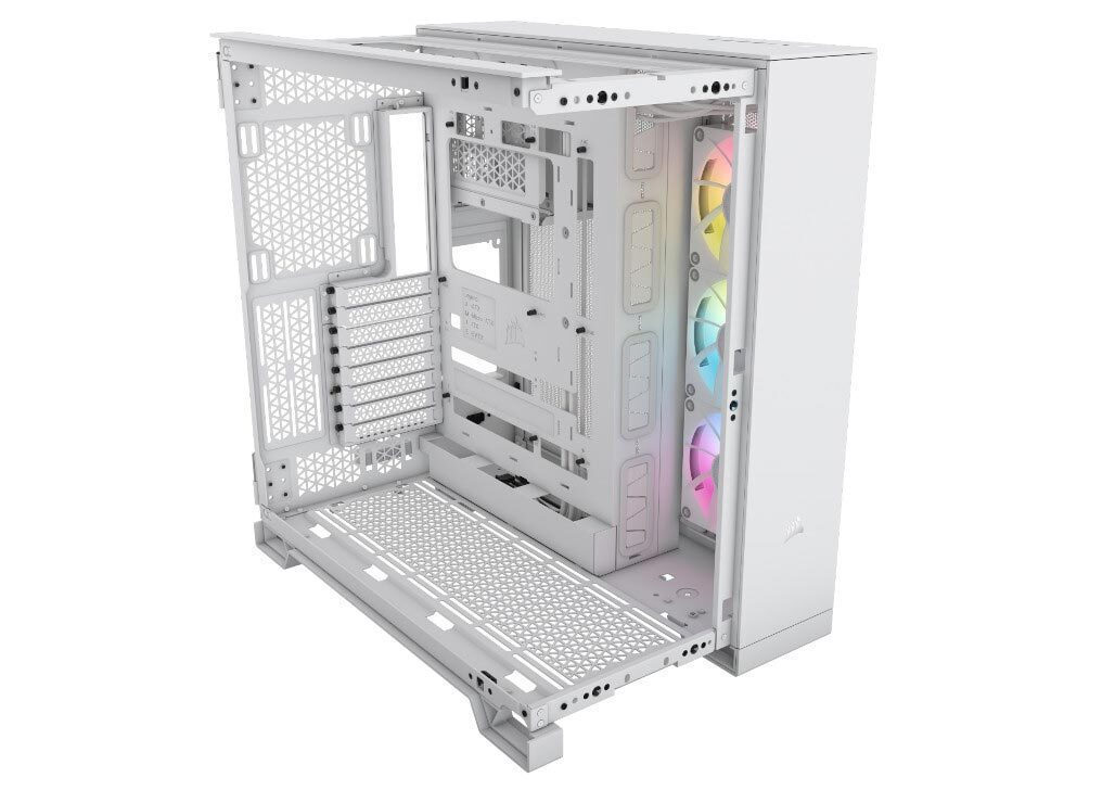 To κουτί υπολογιστή CORSAIR iCUE LINK 6500X RGB Mid-Tower Dual Chamber οργανώνει τη θέα του SFF PC σας μέσα από δύο πάνελ από γυαλί, με τρεις προεγκατεστημένους ανεμιστήρες RX120 RGB.