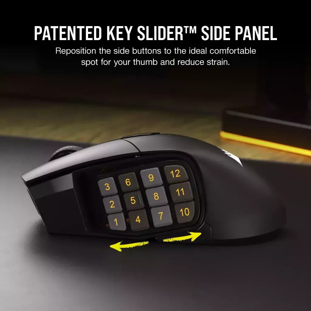 To Corsair Scimitar RGB Elite είναι ένα ασύρματο gaming ποντίκι σχεδιασμένο για δεξιόχειρες, με οπτικό αισθητήρα και ανάλυση 18000 DPI . Διαθέτει 16 κουμπιά (17 από τα οποία μπορούν να προγραμματιστούν) που το κάνουν ιδανικό για ΜΜΟ παιχνίδια. Επιπλέον διαθέτει φωτισμό RGB που μπορεί να πάρει διάφορες αποχρώσεις.