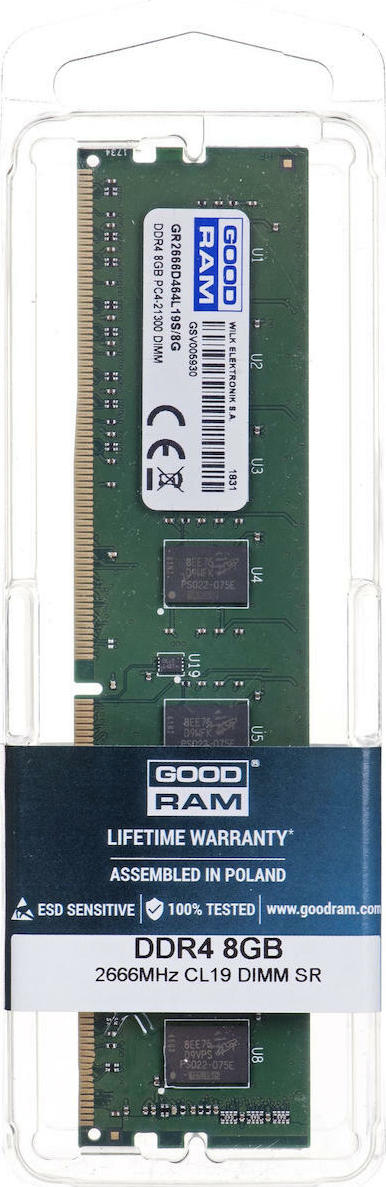 GoodRAM DDR4 με Module 1x8GB και Ταχύτητα 2666 για Desktop Κωδικός GR2666D464L19S/8G