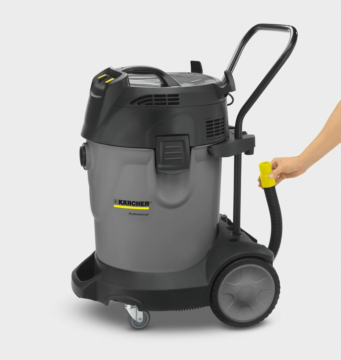 Ισχυρή ηλεκτρική σκούπα ξηρής και υγρής αναρρόφησης με κάδο χωρητικότητας 70 λίτρων και έως τρεις κινητήρες.