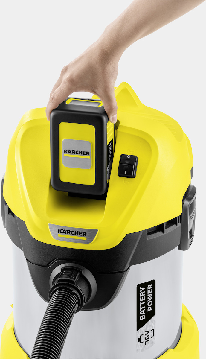 Το σετ της σκούπας μπαταρίας WD 3 Premium αντί για καλώδιο εμπεριέχει μπαταρία και φορτιστή, κάδο 17 l από ανοξείδωτο χάλυβα και εξαρτήματα για μεγαλύτερη ευελιξία και ελευθερία κινήσεων. Για υγρούς και ξηρούς ρύπους. Η μπαταρία είναι συμβατή με όλες τις συσκευές της πλατφόρμας μπαταριών Karcher 36 V.