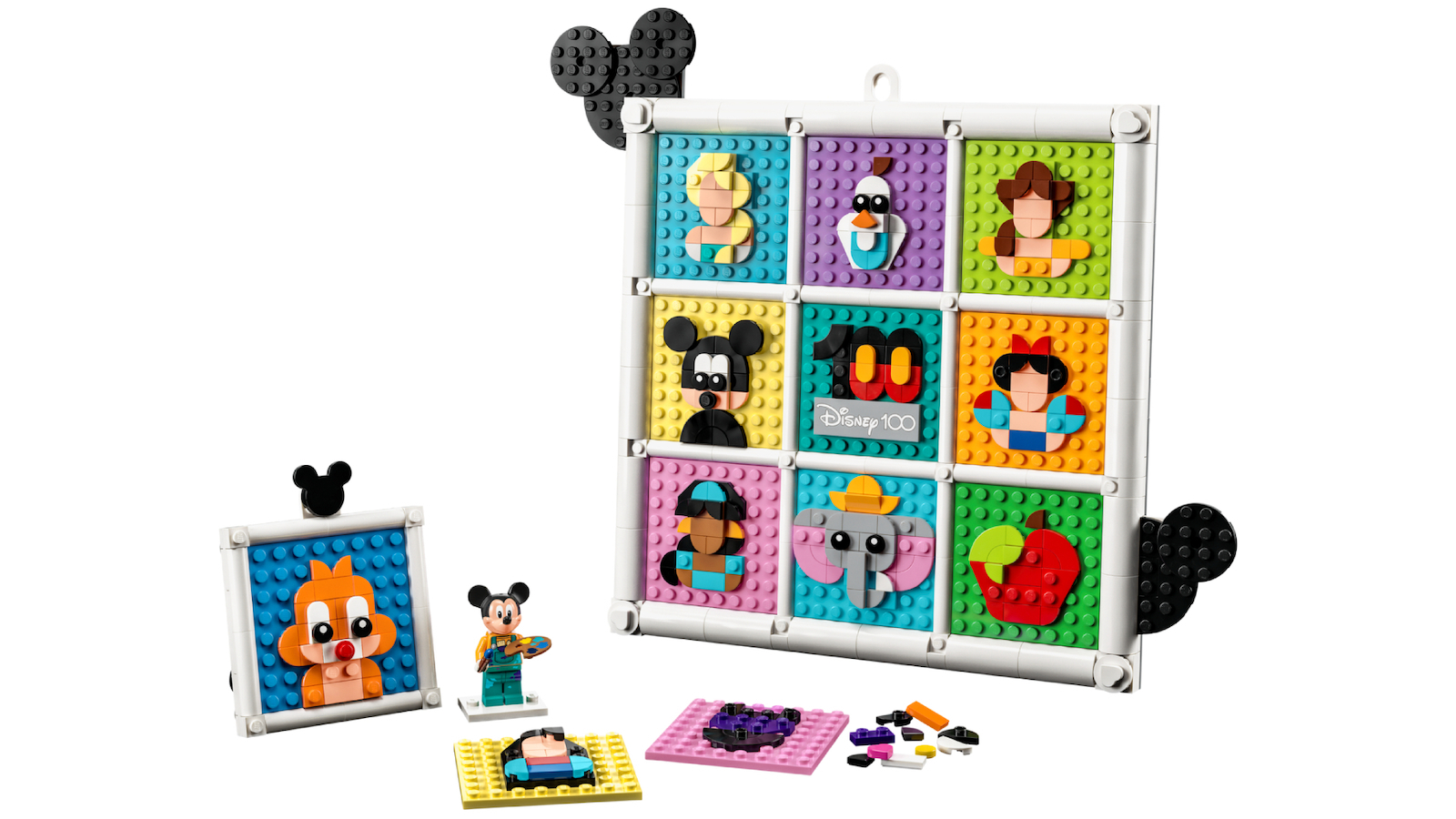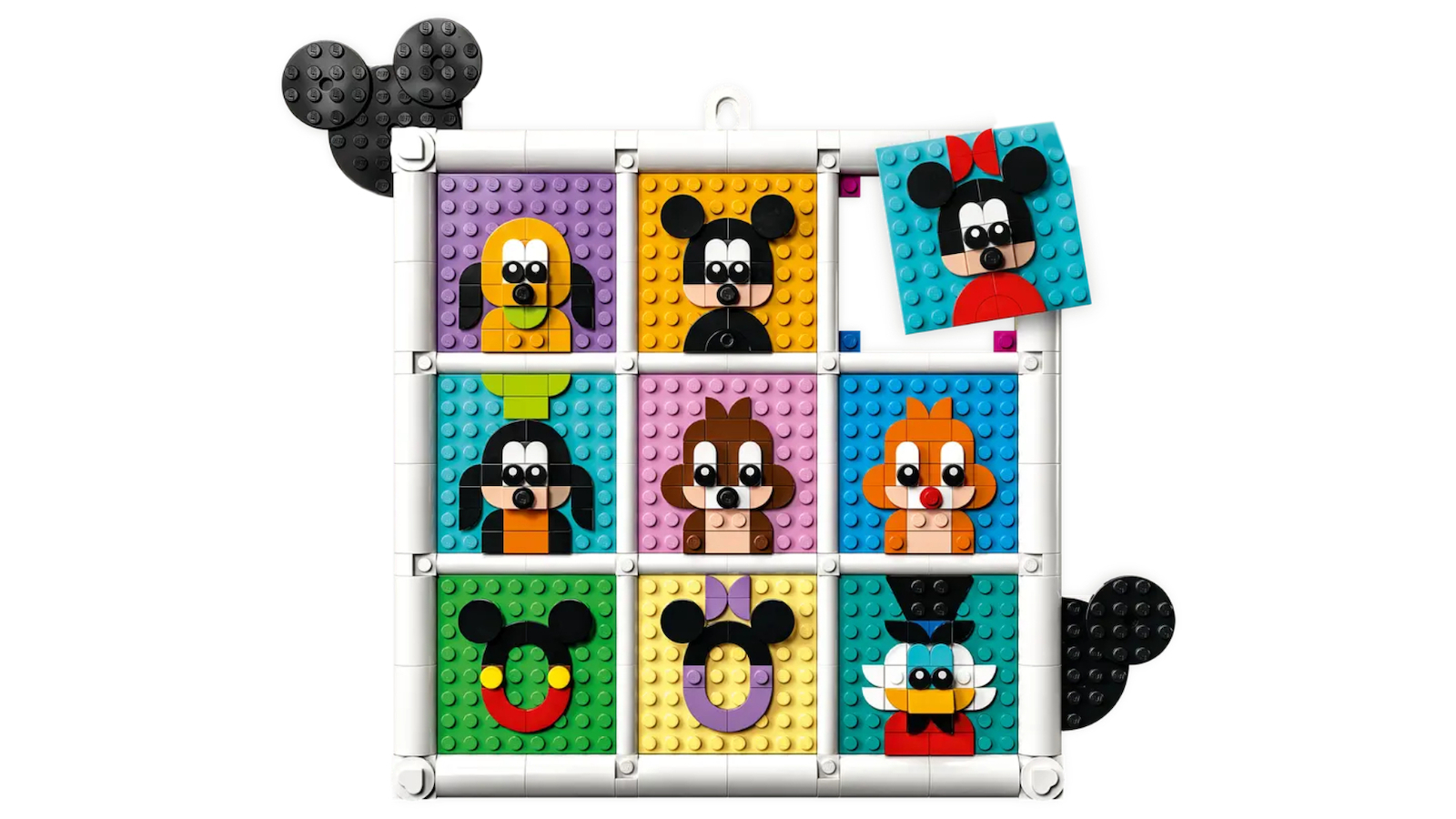 Το σετ περιλαμβάνει 12 πλακίδια, στοιχεία πλαισίου και κρεμάστρα, καθώς και αρκετά πλακίδια για να δημιουργήσετε έως και 12 εικονίδια ταυτόχρονα, συν μια αποκλειστική μινι φιγούρα του Μίκυ Μάους της Disney.