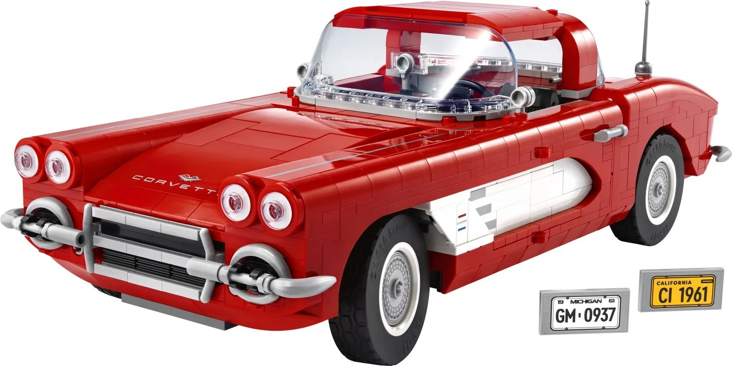 Όλα όσα χρειάζεστε για να αναδημιουργήσετε αυτό το λεπτομερές αντίγραφο LEGO® του εμβληματικού σπορ κάμπριο Corvette του 1961