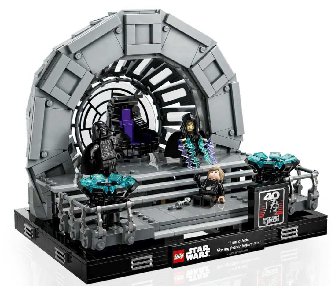 Καλέστε τη Δύναμη καθώς αναδημιουργείτε τη συγκλονιστική μονομαχία με φωτόσπαθα από την ταινία Star Wars: Η Επιστροφή των Τζεντάι. Κατασκευάστε την αίθουσα του θρόνου του Αυτοκράτορα, με παράθυρο του Άστρου του Θανάτου και περιστρεφόμενο θρόνο. Τα φωτόσπαθα του Νταρθ Βέιντερ και του Λουκ Σκαϊγουόκερ και οι κεραυνοί Σιθ του Αυτοκράτορα Πάλπατιν, αυξάνουν την ένταση. Μια πινακίδα που σηματοδοτεί την 40ή επέτειο της ταινίας Star Wars: Η Επιστροφή των Τζεντάι ολοκληρώνει ένα επικό διακοσμητικό.