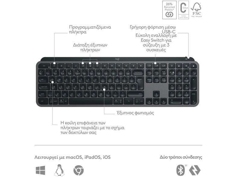 Ζήστε μια νέα εμπειρία ροής με το MX Keys S – Ένα πληκτρολόγιο υψηλών επιδόσεων, σχεδιασμένο για άνετη, γρήγορη και ομαλή πληκτρολόγηση, με έξυπνο φωτισμό και προγραμματιζόμενα πλήκτρα.