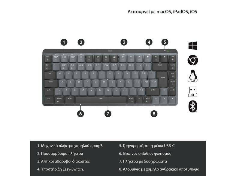 Logitech MX Mechanical Mini Silent Ασύρματο Bluetooth Πληκτρολόγιο Αγγλικό US Γκρι