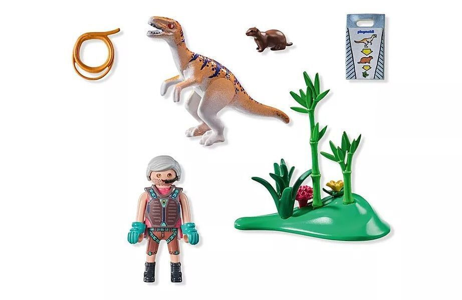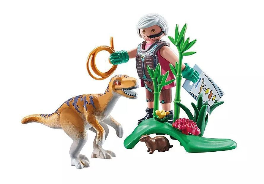 Βυθιστείτε στον συναρπαστικό κόσμο των δεινοσαύρων με το σετ PLAYMOBIL Velociraptor! Ο ευκίνητος βελοσιράπτορας κυνηγά επιδέξια το τρωκτικό, ενώ ο εξερευνητής χρησιμοποιεί χάρτη και λάσο για να απαθανατίσει κάθε στιγμή. Το λεπτομερές σετ διαθέτει αφαιρούμενη πανοπλία και ρεαλιστικά φυτά για ακόμα περισσότερη διασκέδαση.