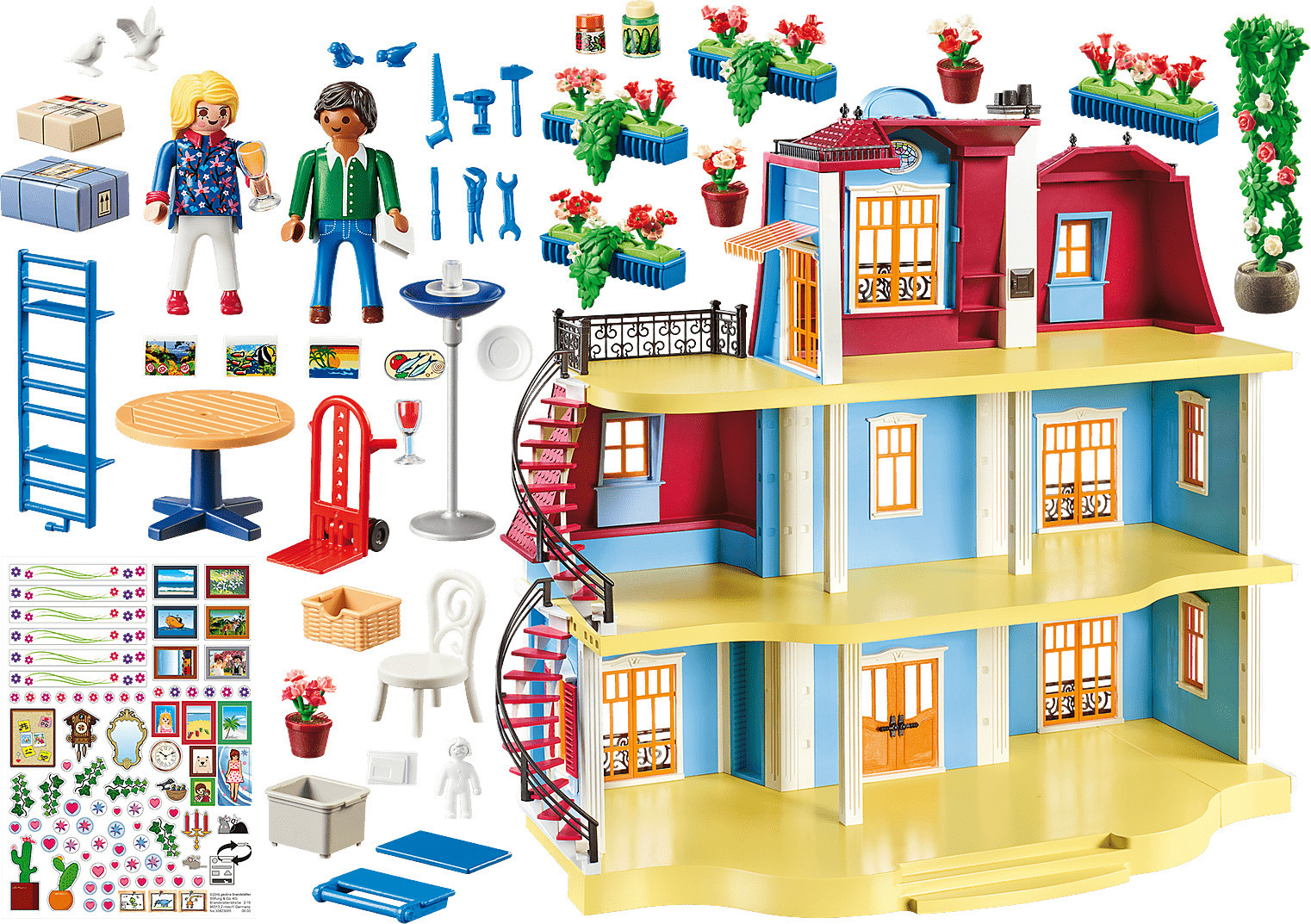 Μπες σε έναν κόσμο φαντασίας με το μεγάλο Playmobil Κουκλόσπιτο! Αυτό το ευρύχωρο σπίτι διαθέτει πολλούς χώρους, μια ταράτσα και ένα κανονικά λειτουργικό κουδούνι. Τα παιδιά μπορούν να το προσωποποιήσουν με επαναχρησιμοποιούμενα αυτοκόλλητα και να απολαμβάνουν ατελείωτο παιχνίδι, διακοσμώντας και αναδιαμορφώνοντας τα δωμάτια.