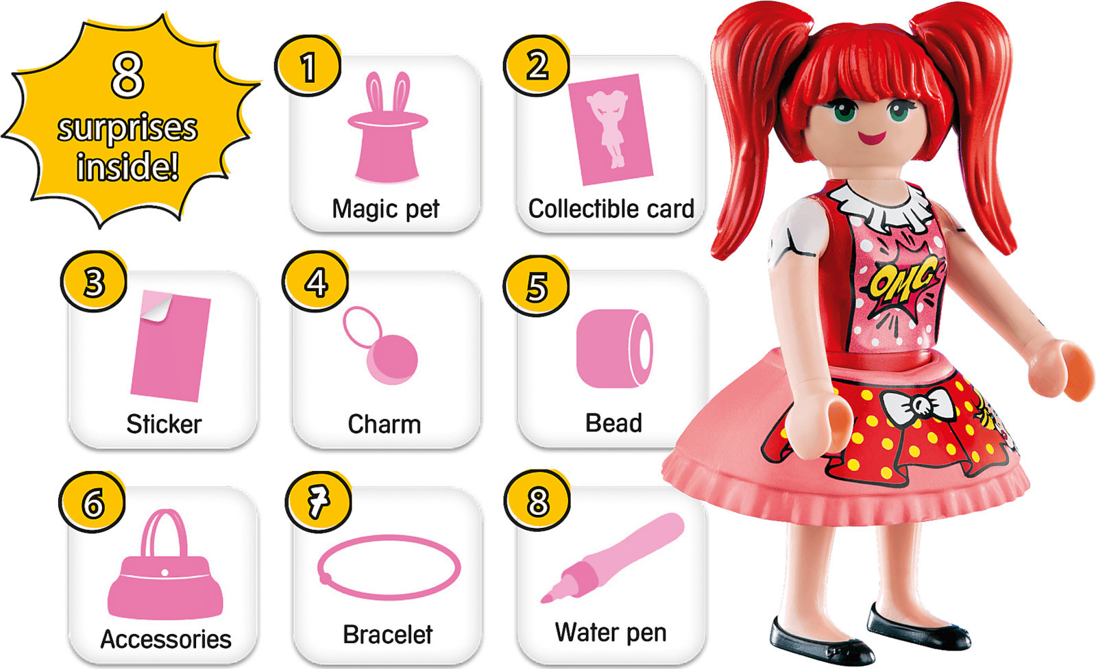 Περιλαμβάνει βραχιολάκι σιλικόνης, χάντρες και μενταγιόν, συλλεκτική κάρτα, αυτοκόλλητο και πολλά απίθανα αξεσουάρ Ζωγραφίστε τα αυτοκόλλητα με τον νέο μαρκαδόρο νερού Playmobil Κατάλληλο για παιδιά ηλικίας 7+ ετών