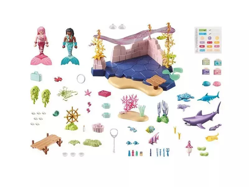 Συμπεριλαμβάνει δύο φιγούρες PLAYMOBIL, έναν καρχαρία, ιππόκαμπους, μια θαλάσσια χελώνα, μια μικρή φώκια και πολλά άλλα θαλάσσια ζώα