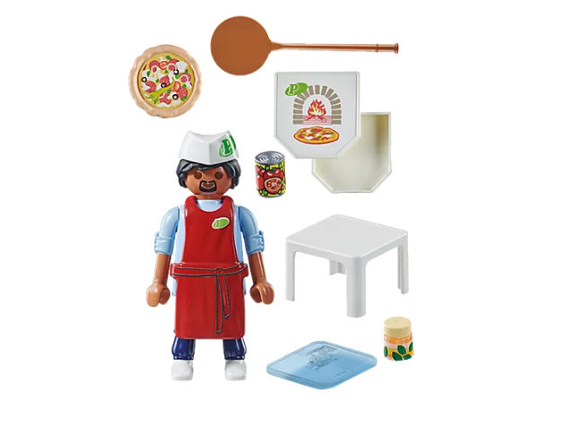 Περιλαμβάνει πίτσα, κουτί πίτσας και απίθανα αξεσουάρ. Όσοι αγαπούν την πίτσα, σίγουρα θα λατρέψουν το συγκεκριμένο σετ παιχνιδιού. Ο Mr. Pizza βγάζει την πίτσα από τον ξυλόφουρνο, την τοποθετεί πολύ προσεκτικά στο κουτί… και καλή σας απόλαυση! Το καπέλο και η ποδιά μπορούν να αφαιρεθούν από τη φιγούρα.