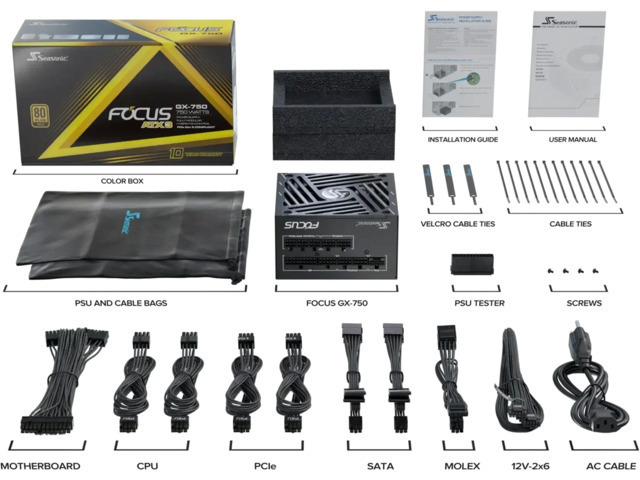 Seasonic Focus GX ATX3.1 2024 750W Μαύρο Τροφοδοτικό Υπολογιστή Full Modular 80 Plus Gold