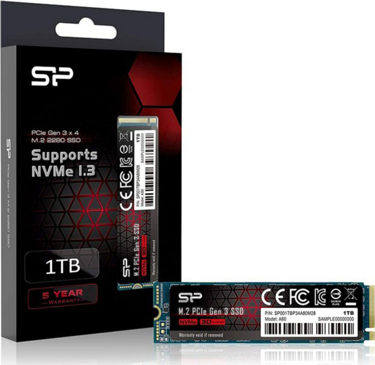 Silicon Power P34A80 SSD 1TB M.2 NVMe PCI Express 3.0 Κωδικός SP001TBP34A80M28