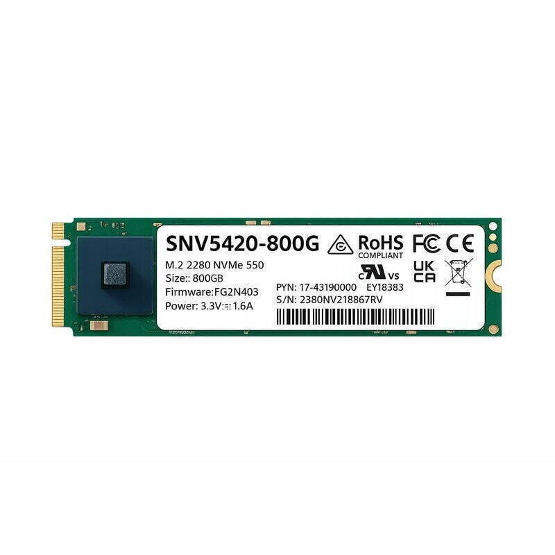 Ο Synology SNV5420-800G είναι ένας υψηλής απόδοσης SSD M.2 NVMe 800GB, σχεδιασμένος για τομείς επιχειρήσεων και NAS, προσφέροντας εξαιρετική ταχύτητα αποθήκευσης, αντοχή και αξιοπιστία. Αυτός ο SSD χρησιμοποιεί τη μορφή M.2 2280 και συνδέεται μέσω της διεπαφής PCIe 3.0 x4 NVMe, καθιστώντας τον ιδανικό για εντατικές φόρτους εργασίας σε διακομιστές.
