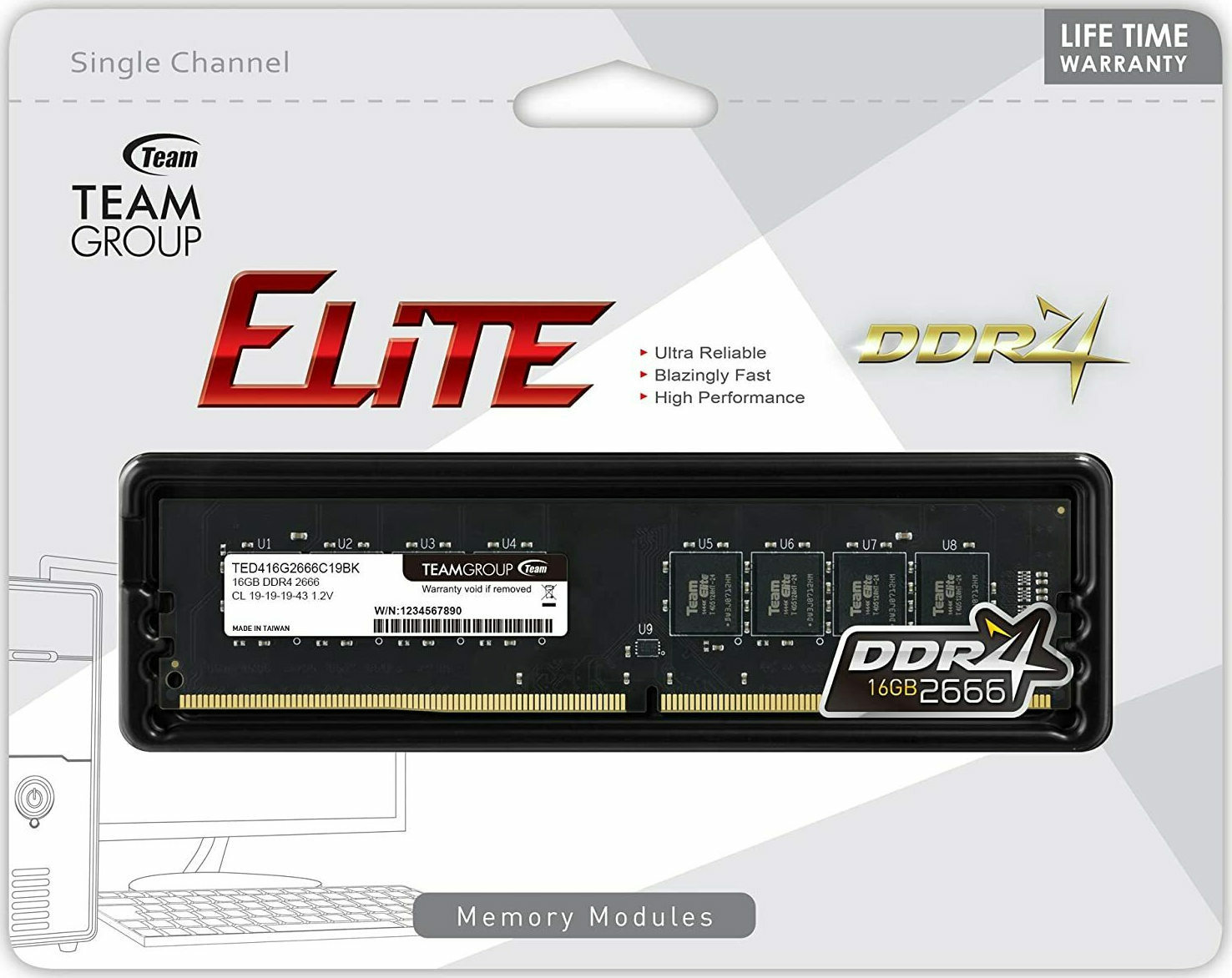 TeamGroup Elite DDR4 με Module 1x16GB και Ταχύτητα 2666 για Desktop Κωδικός TED416G2666C1901