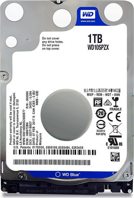Western Digital Blue 1TB HDD Σκληρός Δίσκος 2.5 SATA III 5400rpm με 128MB Cache για Laptop / Desktop / PS4 Κωδικός WD10SPZX