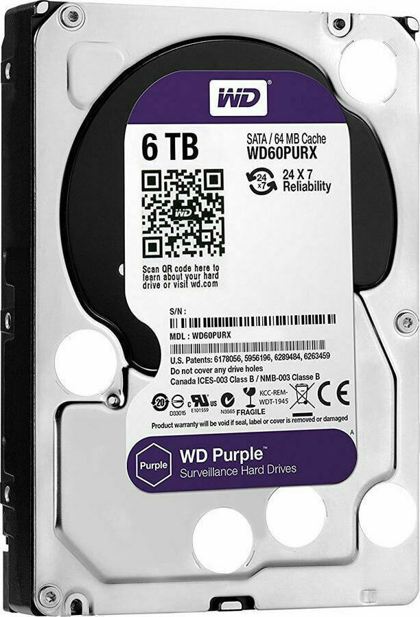Η σειρά δίσκων WD Purple είναι σχεδιασμένη για συστήματα παρακολούθησης με διεπαφή SATA III. Είναι ειδικά κατασκευασμένοι για συστήματα ασφαλείας υψηλής ευκρίνειας μέσα σε ένα NVR περιβάλλον, με υποστηριζόμενο φόρτο εργασίας έως και 180 TB/έτος και παρέχοντας υποστήριξη για έως και 64 κάμερες.